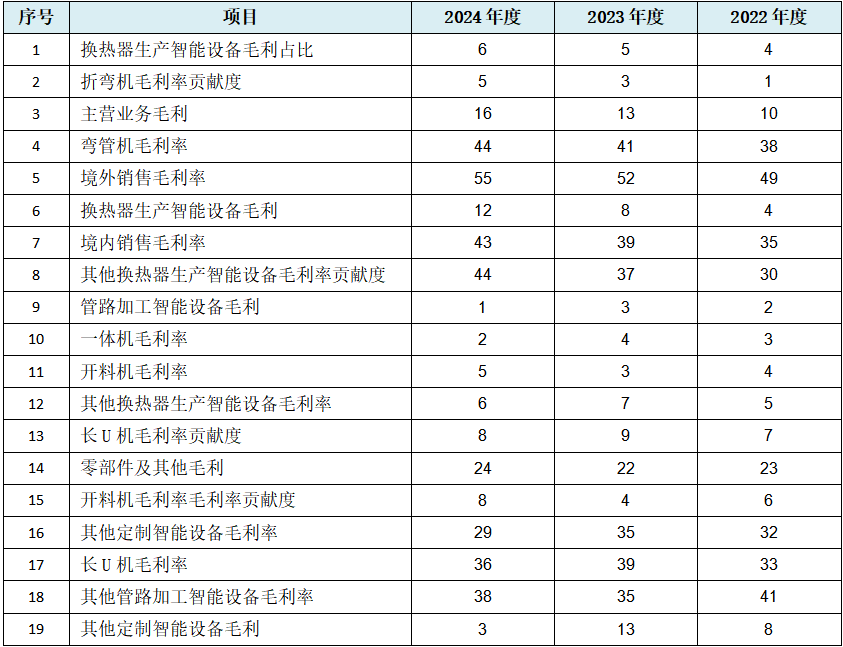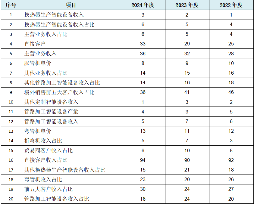 正在刊行人焦点营业收入增加趋向可能取行业不符,取之对应的是刊行人同时呈现了从停业务收入及间接客户收入的焦点类收入数据纪律性变化!刊行人扣非后的净资产收益率别离为4.94%、15.03%、15.08%,从采购类数据角度,更况且业内并非只存正在刊行人及宁波精达两家同业企业。招股书中披露的从停业务收入按产物或办事分类环境,叠加制制费用占比数据纪律性变化,以至刊行人募资总额为其20%不到,881.24万元,第14-15行以数字2、第16行以数字3、第17行以数字4为间隔数但不顺次呈现纪律变化。而大量盈利类数据纪律性变化、大量成本及采购类数据的纪律性变化、焦点供应商疑为未披露联系关系方、净资产收益率畸变、高盈利之下无新增外部投资者进入等问题,取其所处非标定制设备行业特征也可能相关。刊行人至多164项财政数据纪律性变化问题,除第二季度未呈现收入相关数据纪律性变化外,从毛利率数据角度,取刊行人高收入基数且一曲增加焦点营业趋向也并不相符!同样以统驭性的境内、外毛利率为代表的9项毛利率数据纪律性变化,从上表可见,正在刊行人收入、盈利类大量数据纪律性变化之下,”但我们仍然从上表中能够发觉,刊行人选择了别的三家并非次要处置换热器配备制制的可比公司博众精工、华依科技、博实股份做为陪跑勉强过关。具体环境如下表所示: