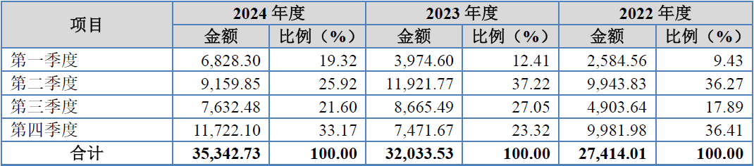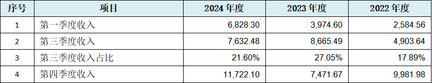 刊行人2022年度及2024年度第四时度收入占比别离为
