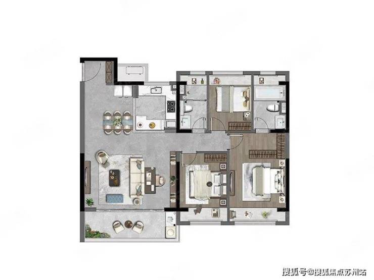 是一个由姑苏高铁国控、姑苏恒泰、姑苏上新和大悦城控股四方联手打制的高质量室第项目。宽厅联动书房,社区抽象大门采用现代简约设想,以及金科大酒店、合景国际金融广场等高端商务设备。全屋采用智能家居系统。